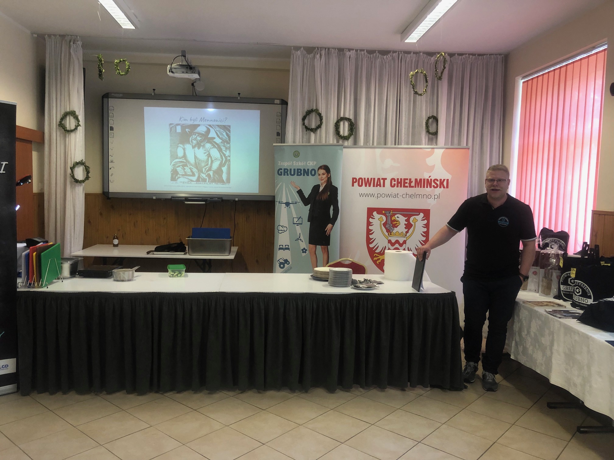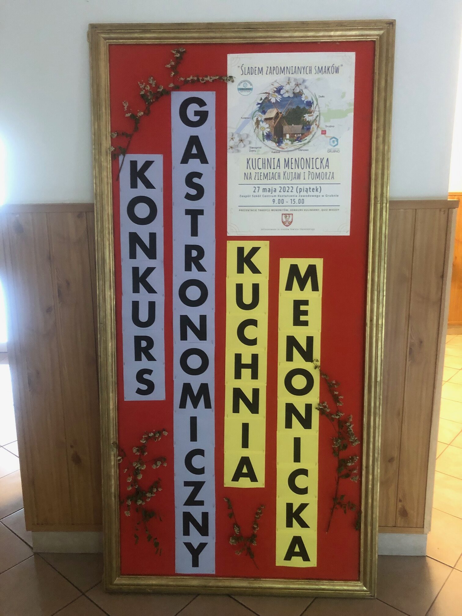 27 maja 2022 r. na terenie Zespołu Szkół Centrum Kształcenia Zawodowego w Grubnie odbyło się wydarzenie pn. „Śladem zapomnianych smaków. Kuchnia menonicka na ziemiach Kujaw i Pomorza” dofinansowane ze środków Powiatu Chełmińskiego. W ramach przedsięwzięcia odbyły się: